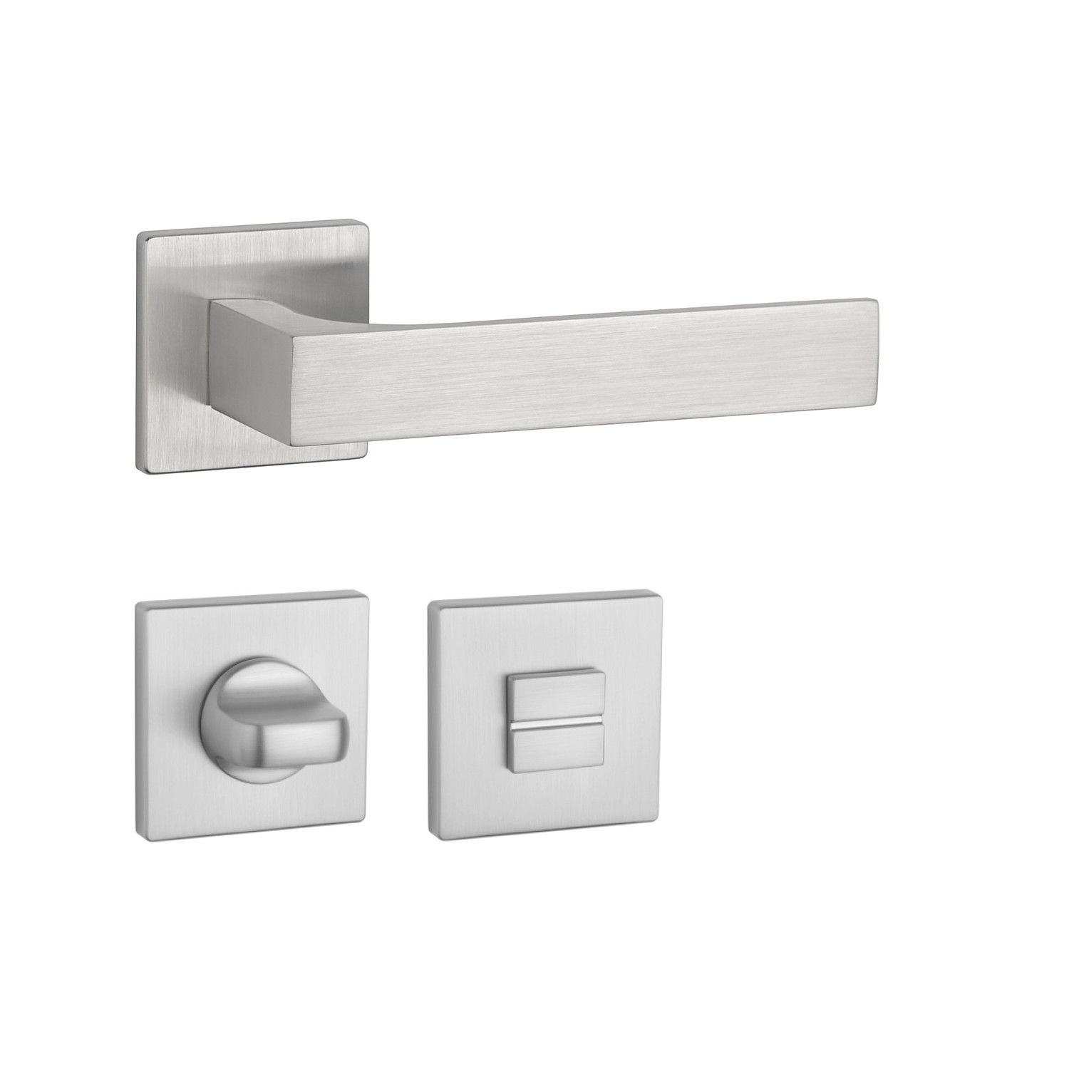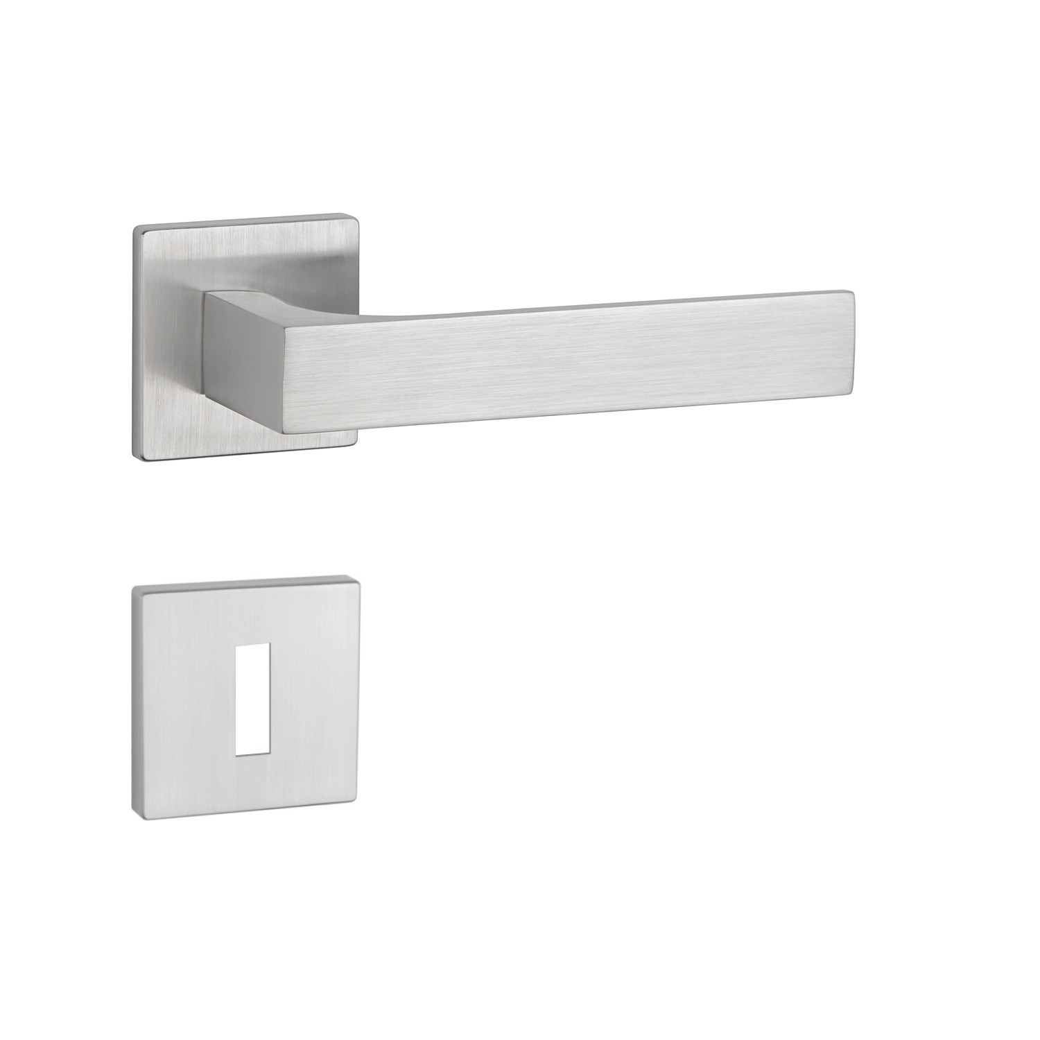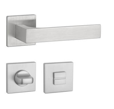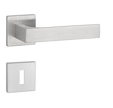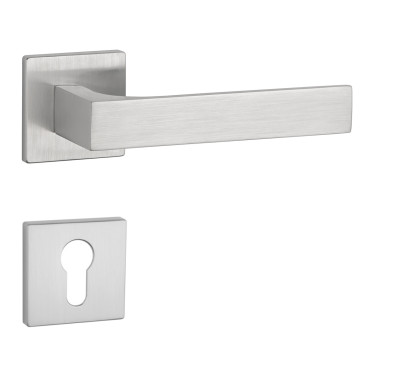 Rozetová kľučka na interiérové dvere s hranatou rozetou je vyrobená z materiálov vysokej kvality - zamak a je povrchovo upravená. Rozeta má rozmer 52x52 mm a hrúbku len 5 mm. Minimalistický dizajn rozety s vysokou stabilitou kľučky na dverách pôsobí jemne, a tým ponecháva priestor pre vyniknutie dizajnu samotnej kľučky.