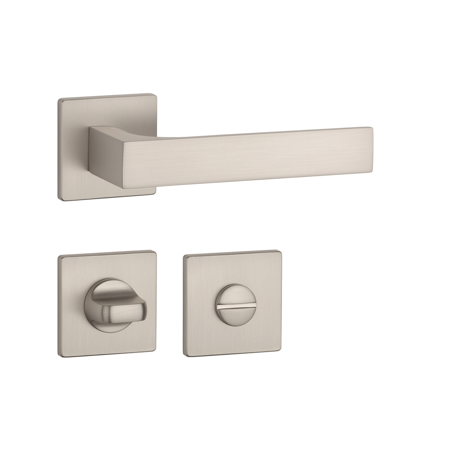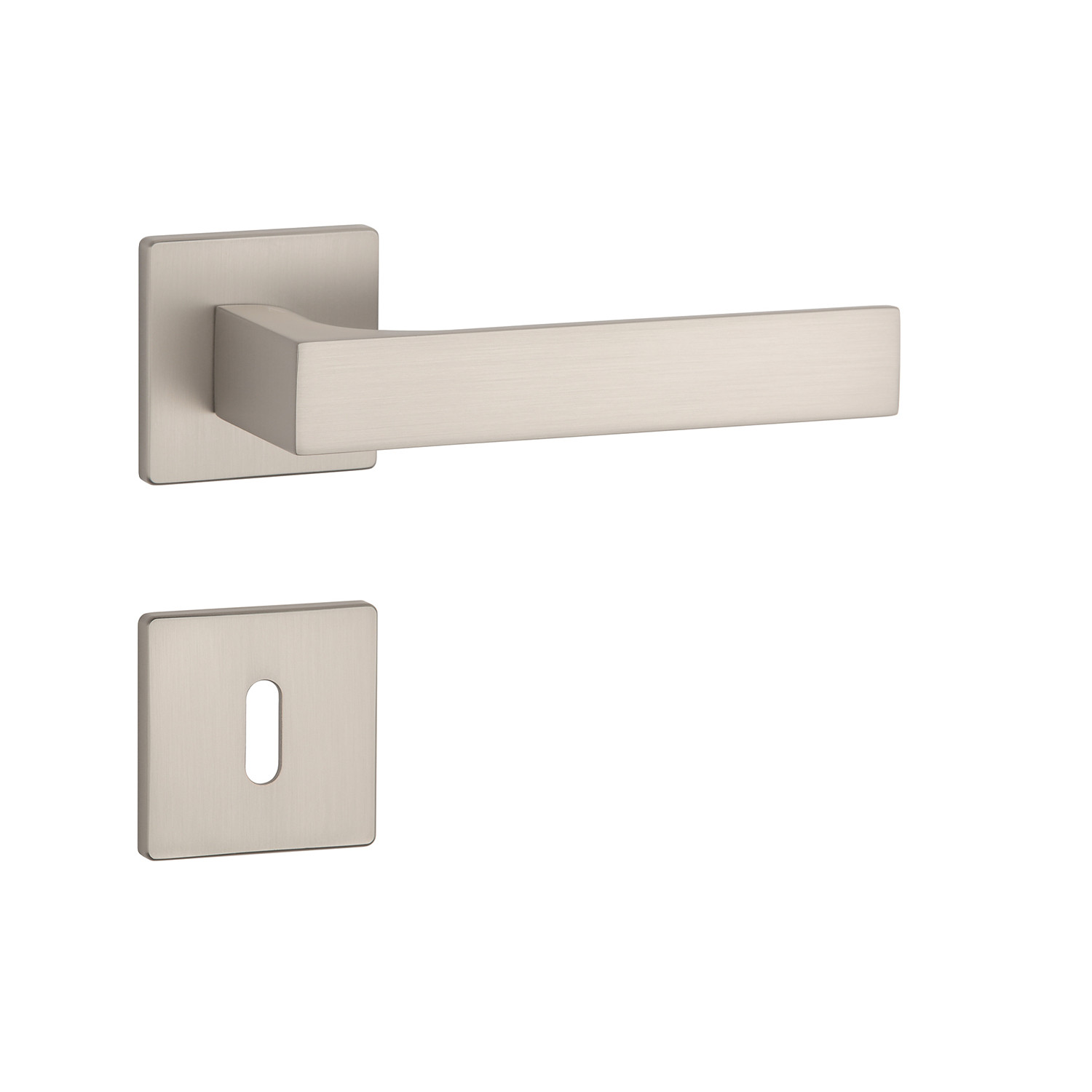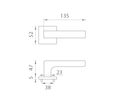 Rozetová kľučka na interiérové dvere s hranatou rozetou je vyrobená z materiálov vysokej kvality - zamak a je povrchovo upravená. Rozeta má rozmer 52x52 mm a hrúbku len 5 mm. Minimalistický dizajn rozety s vysokou stabilitou kľučky na dverách pôsobí jemne, a tým ponecháva priestor pre vyniknutie dizajnu samotnej kľučky.
