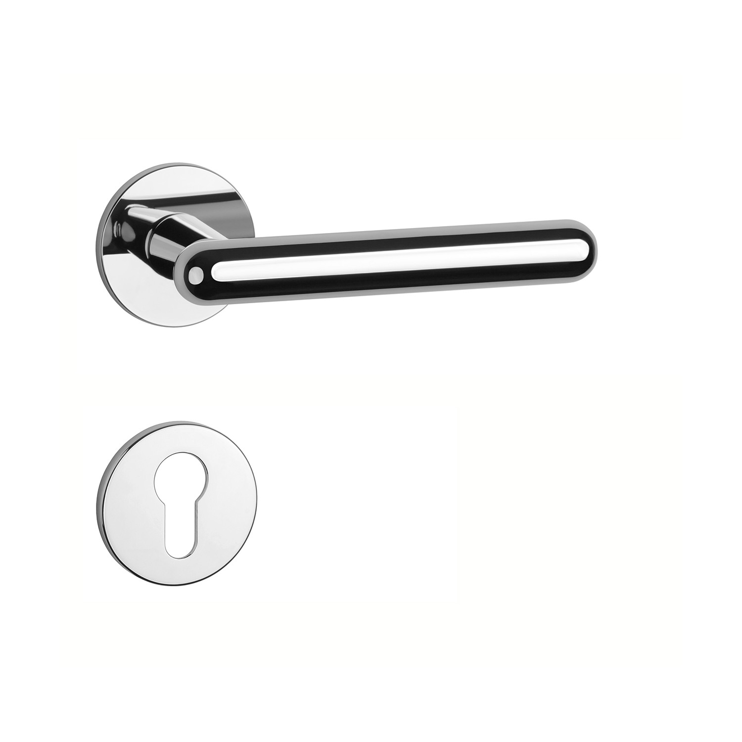 Rozetová kľučka ASTERIA na na interiérové dvere s okrúhlou rozetou je vyrobená z materiálov vysokej kvality - zamak a je povrchovo upravená. Rozeta má priemer 52 mm a hrúbku len 5 mm. Minimalistický dizajn rozety s vysokou stabilitou kľučky na dverách pôsobí jemne, a tým ponecháva priestor pre vyniknutie dizajnu samotnej kľučky.