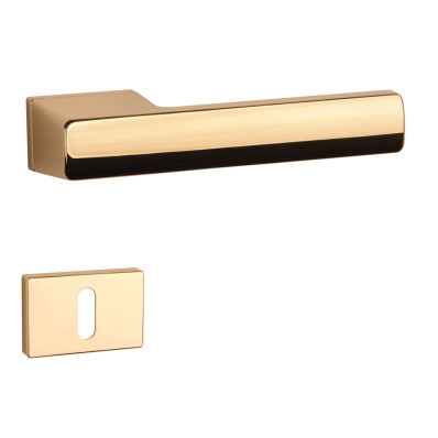 Rozetová kľučka na interiérové dvere s obdĺžnikovou rozetou je vyrobená z materiálov vysokej kvality - zamak a je povrchovo upravená. Rozeta má rozmer 52 x 33 mm a hrúbku len 7 mm. Minimalistický dizajn rozety s vysokou stabilitou kľučky na dverách pôsobí jemne, a tým ponecháva priestor pre vyniknutie dizajnu samotnej kľučky.