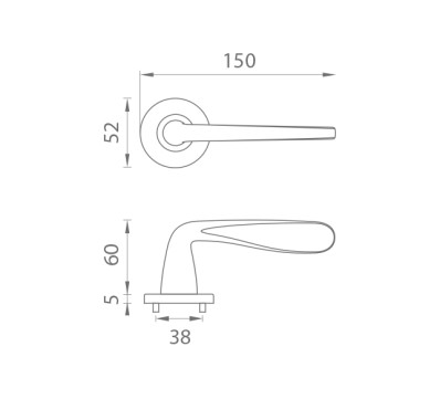Rozetová kľučka na interiérové dvere s okrúhlou rozetou je vyrobená z materiálov vysokej kvality - zamak a je povrchovo upravená. Rozeta má priemer 52 mm a hrúbku len 5 mm. Minimalistický dizajn rozety s vysokou stabilitou kľučky na dverách pôsobí jemne, a tým ponecháva priestor pre vyniknutie dizajnu samotnej kľučky.