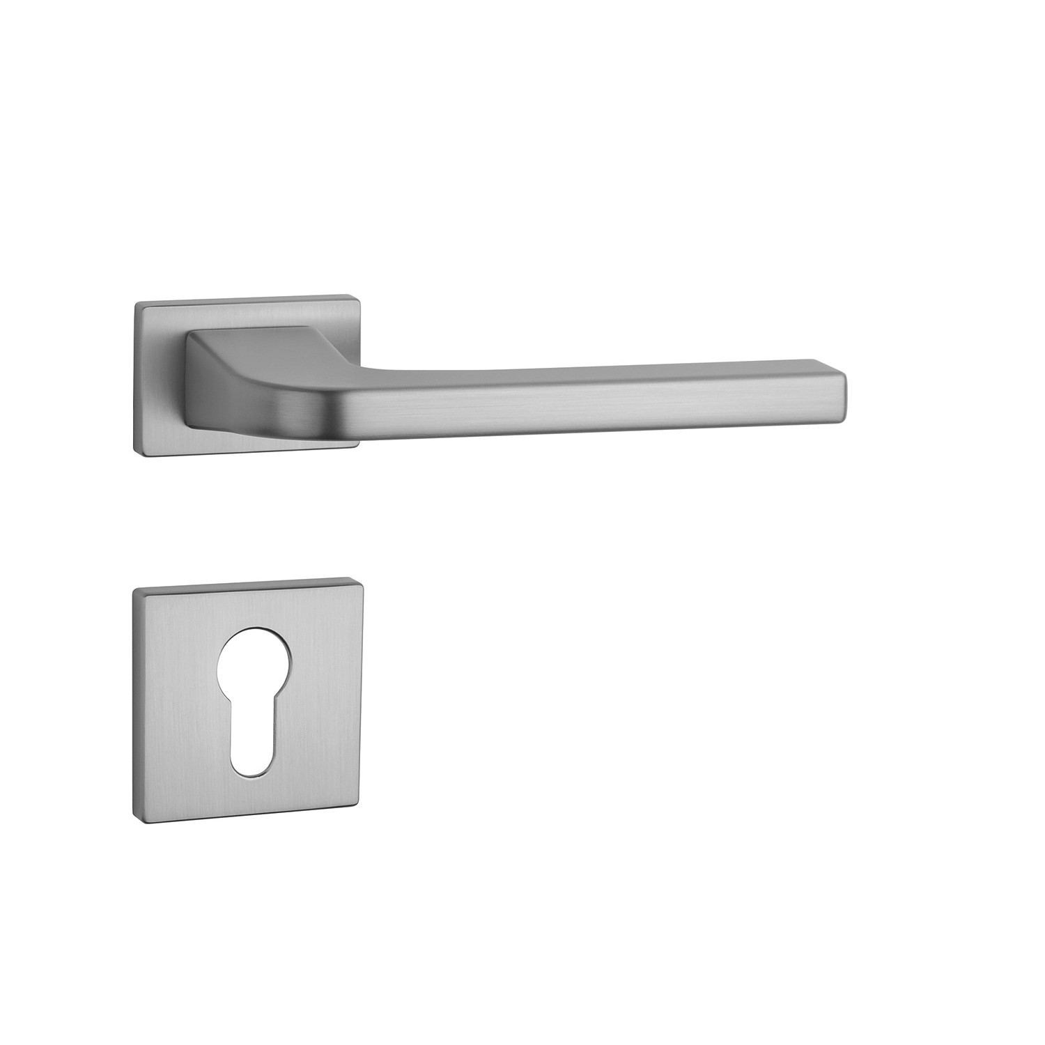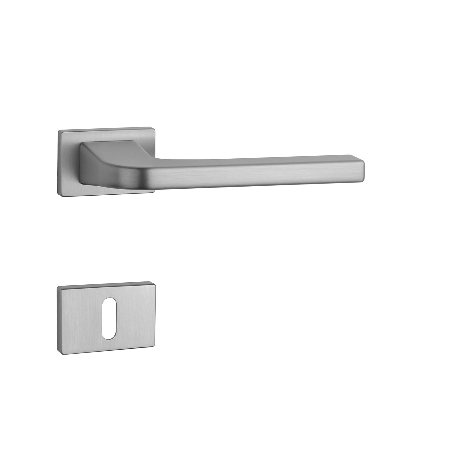 Rozetová kľučka na interiérové dvere s obdĺžnikovou rozetou je vyrobená z materiálov vysokej kvality - zamak a je povrchovo upravená. Rozeta má rozmer 50 x 33 mm a hrúbku len 7 mm. Minimalistický dizajn rozety s vysokou stabilitou kľučky na dverách pôsobí jemne, a tým ponecháva priestor pre vyniknutie dizajnu samotnej kľučky.