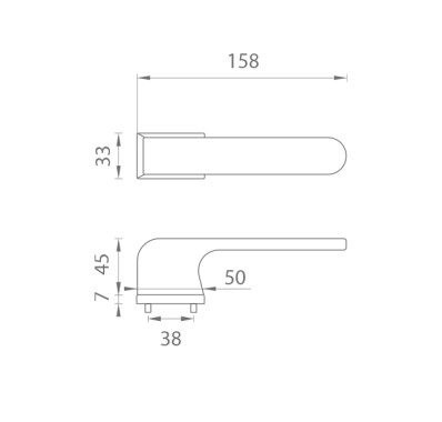 Rozetová kľučka na interiérové dvere s obĺžnikovou rozetou je vyrobená z materiálov vysokej kvality - zamak a je povrchovo upravená. Rozeta má rozmer 52 x 33 mm a hrúbku len 7 mm. Minimalistický dizajn rozety s vysokou stabilitou kľučky na dverách pôsobí jemne, a tým ponecháva priestor pre vyniknutie dizajnu samotnej kľučky.
