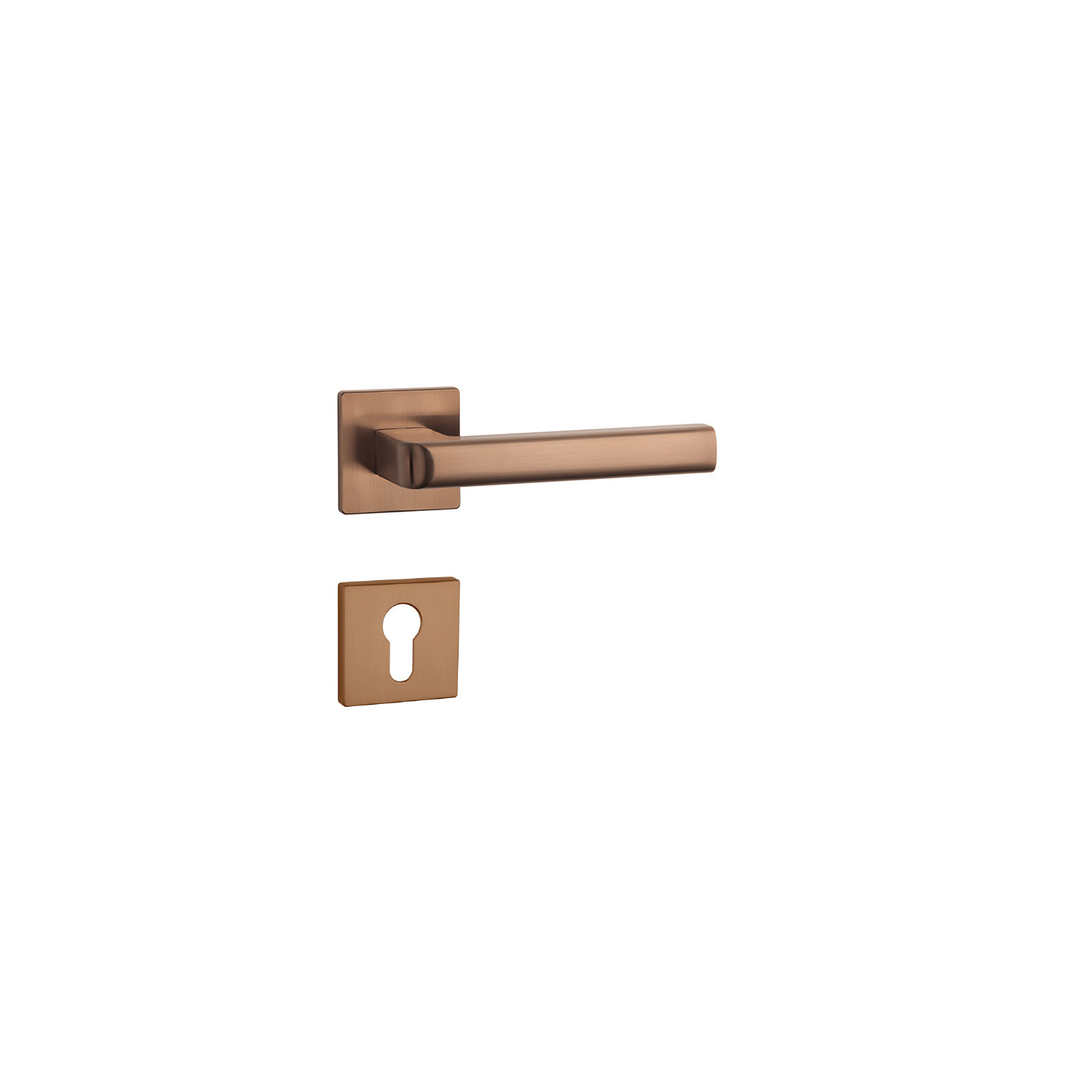 Rozetová kľučka na interiérové dvere s hranatou rozetou je vyrobená z materiálov vysokej kvality - zamak a je povrchovo upravená. Rozeta má rozmer 52x52 mm a hrúbku len 5 mm. Minimalistický dizajn rozety s vysokou stabilitou kľučky na dverách pôsobí jemne, a tým ponecháva priestor pre vyniknutie dizajnu samotnej kľučky.