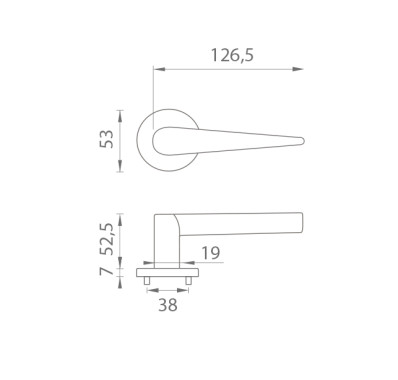 Rozetová kľučka na interiérové dvere s okrúhlou rozetou je vyrobená z materiálov vysokej kvality - zamak a je povrchovo upravená. Rozeta má priemer 53 mm a hrúbku len 7 mm.
