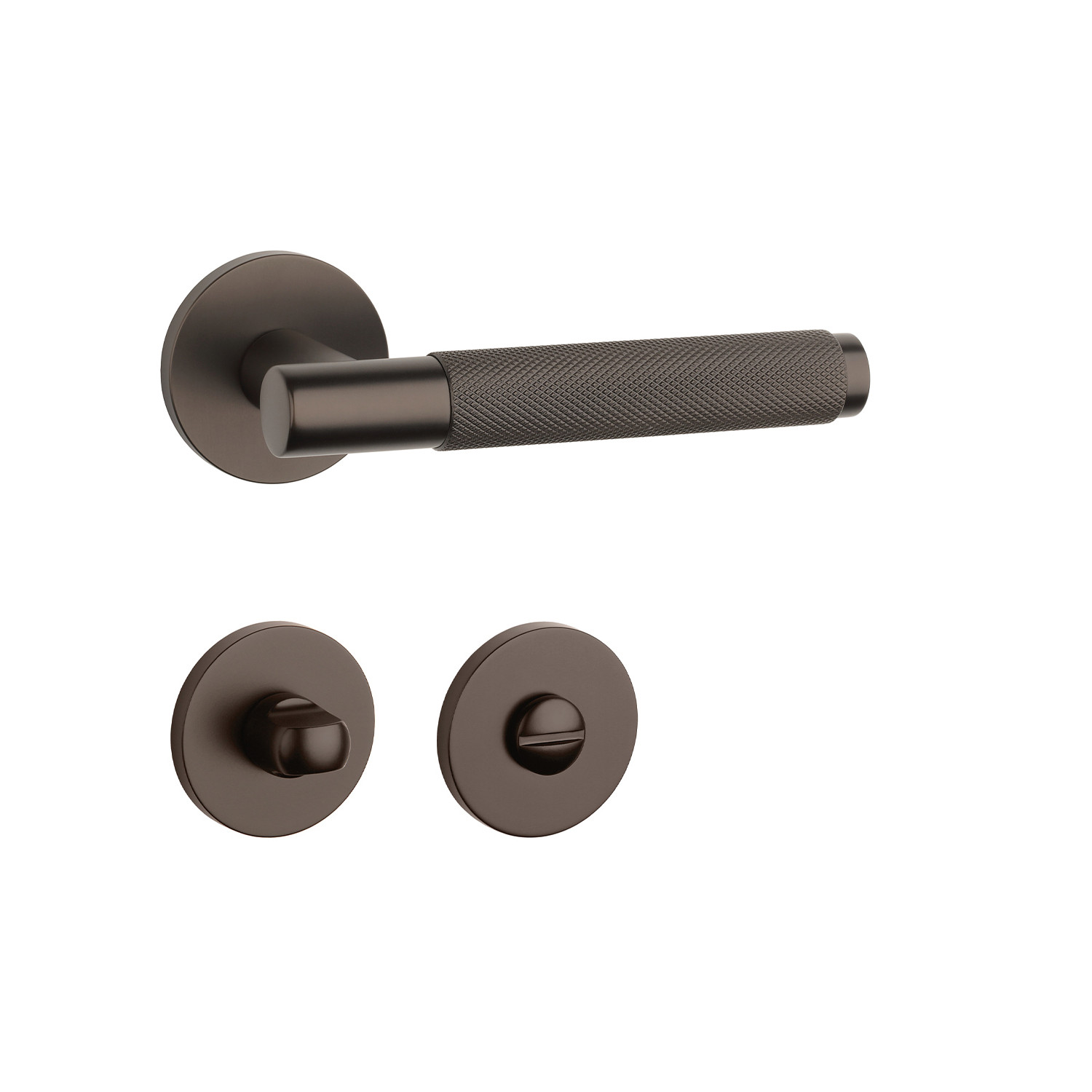 Rozetová kľučka na interiérové dvere s okrúhlou rozetou je vyrobená z materiálov vysokej kvality - zamak a je povrchovo upravená. Rozeta má priemer 53 mm a hrúbku len 7 mm. Minimalistický dizajn rozety s vysokou stabilitou kľučky na dverách pôsobí jemne, a tým ponecháva priestor pre vyniknutie dizajnu samotnej kľučky.