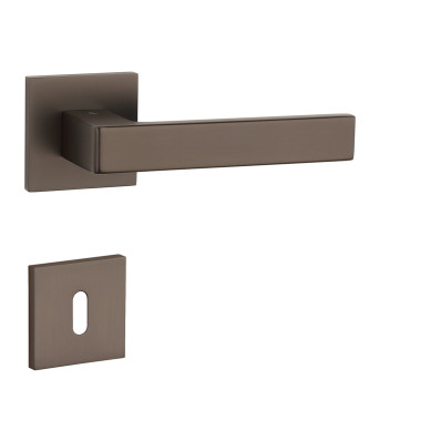 Rozetová kľučka na interiérové dvere s hranatou rozetou je vyrobená z materiálov vysokej kvality - zamak a je povrchovo upravená. Rozeta má rozmer 52x52 mm a hrúbku len 7 mm. Minimalistický dizajn rozety s vysokou stabilitou kľučky na dverách pôsobí jemne, a tým ponecháva priestor pre vyniknutie dizajnu samotnej kľučky.