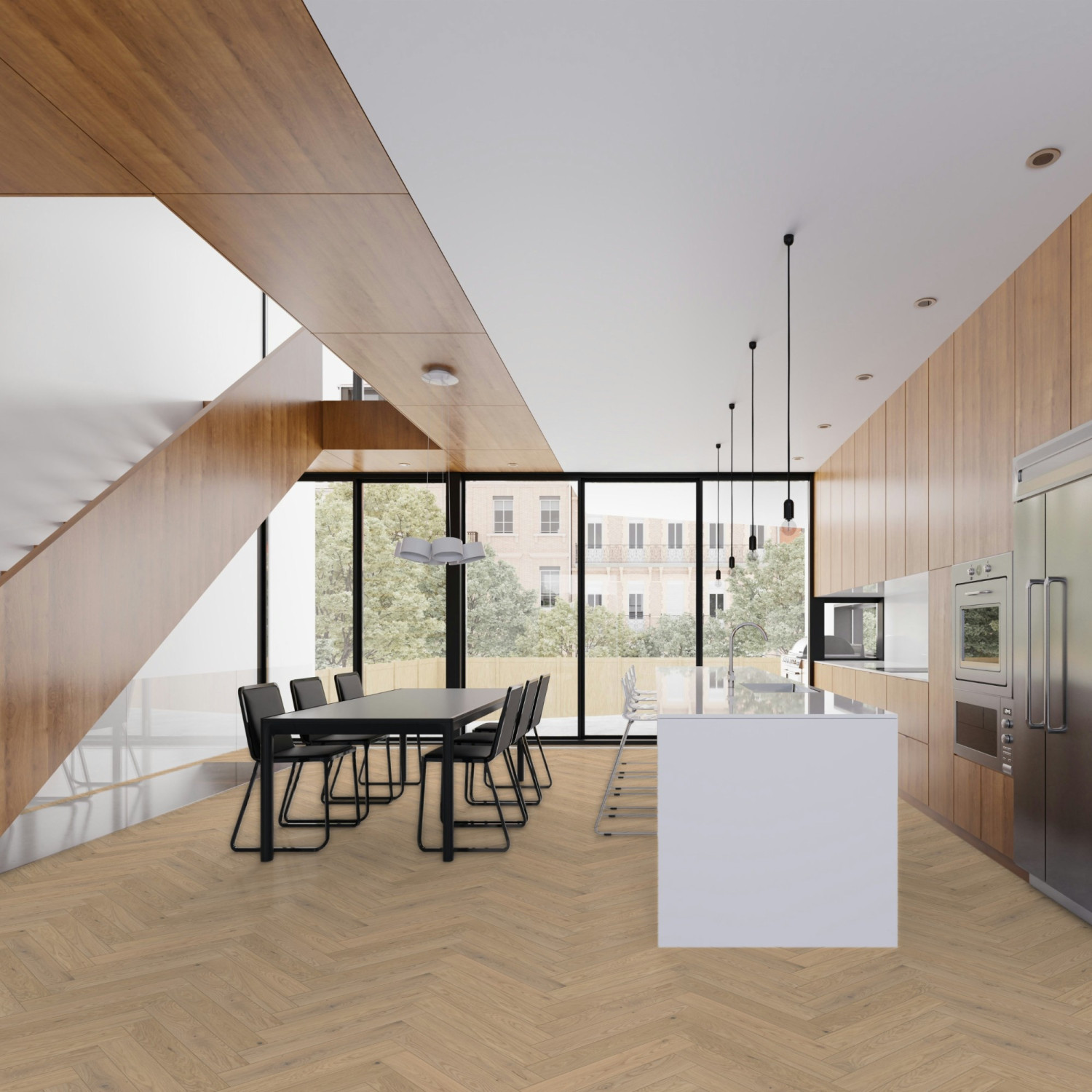 Engineered Wood Flooring Trendtime 3 Living Plus Herringbone, Dub Bardolino biely matný lak M4V , 1748883 570x95x13 mm