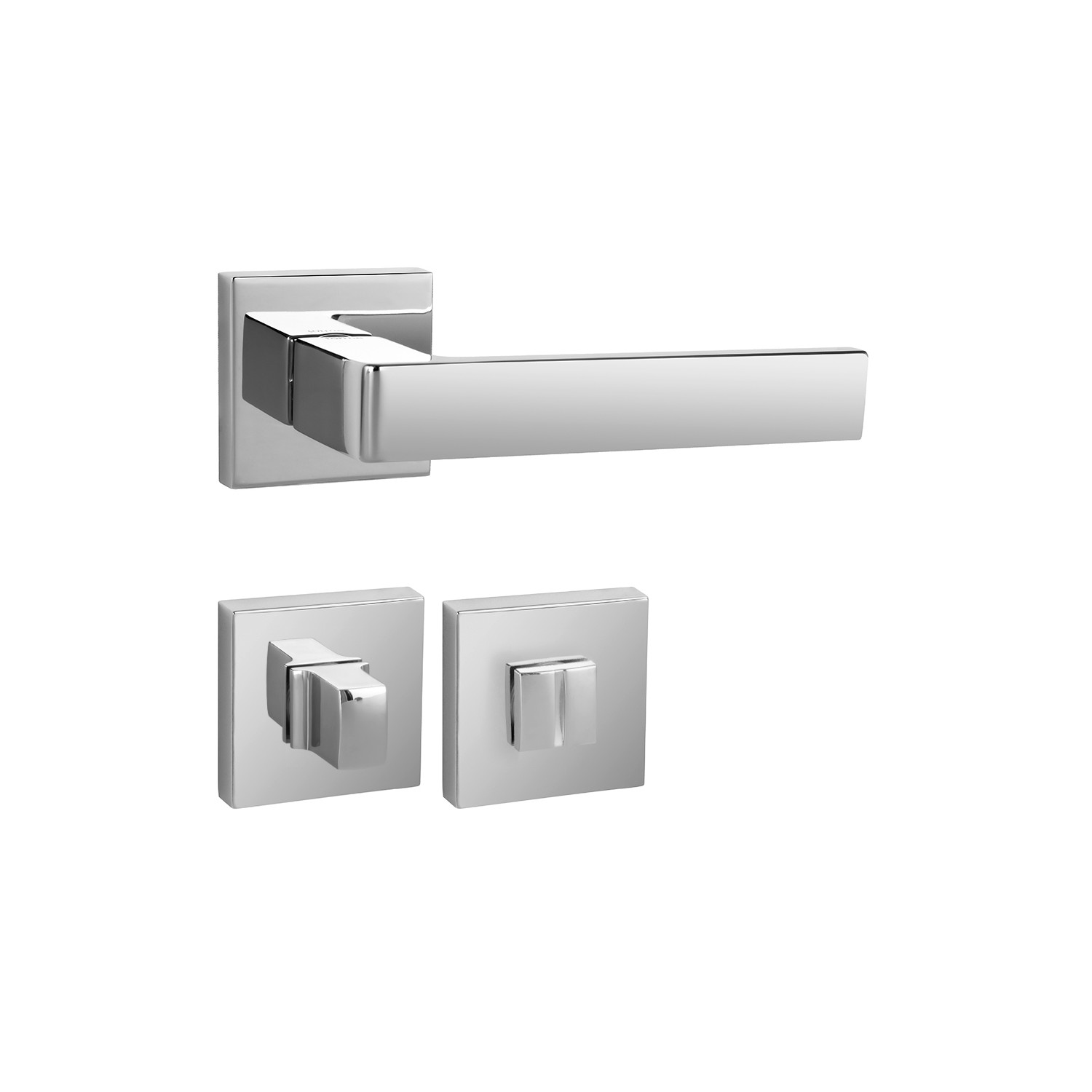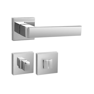 Rozetová kľučka na interiérové dvere s hranatou rozetou je vyrobená z materiálov vysokej kvality – zamak a je povrchovo upravená. Rozeta má rozmery 50 mm x 50 mm a hrúbku 10 mm.