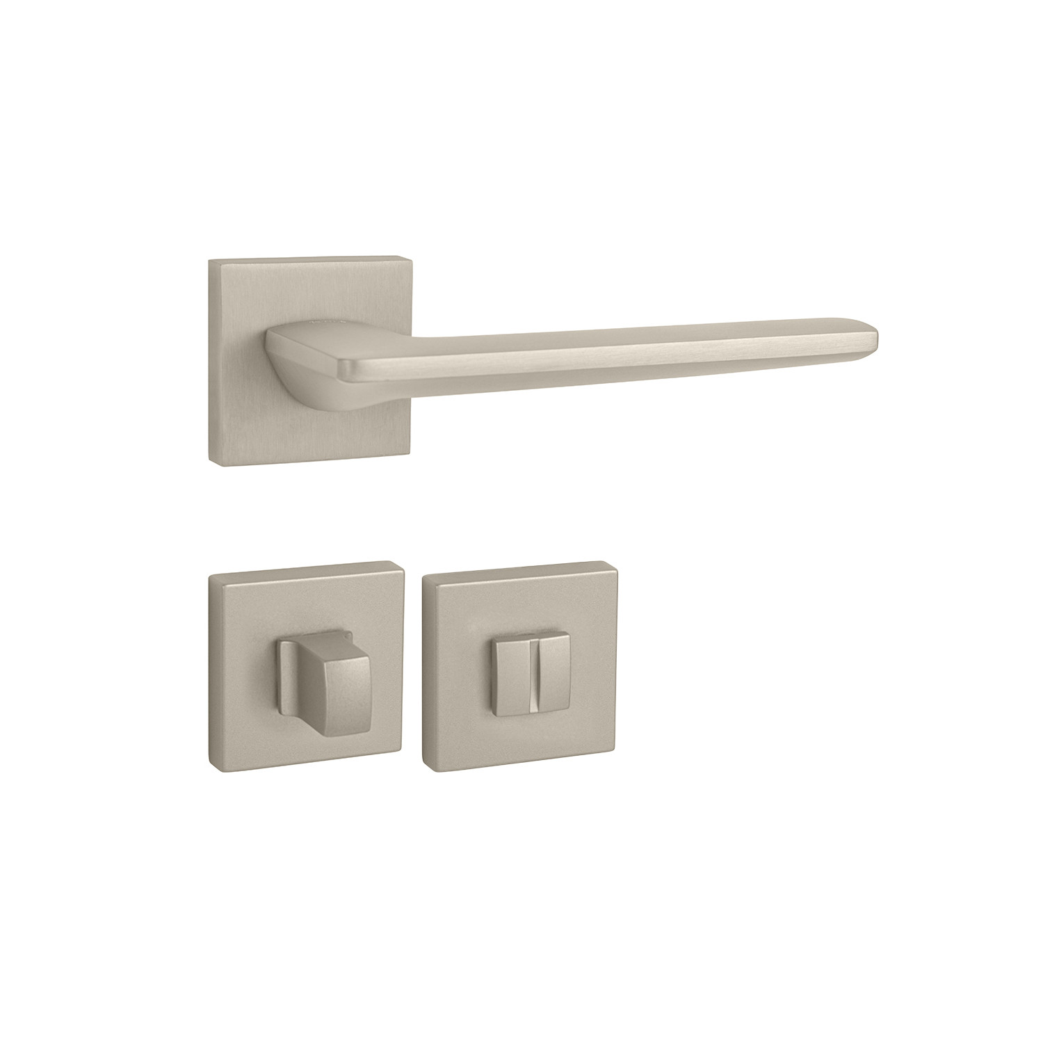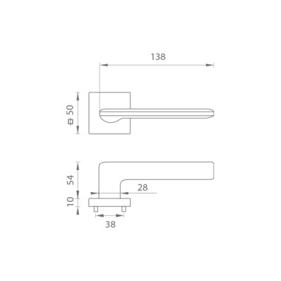 Rozetová kľučka na interiérové dvere s hranatou rozetou je vyrobená z materiálov vysokej kvality – mosadz / zamak a je povrchovo upravená. Rozeta má rozmery 50 mm x 50 mm a hrúbku 10 mm.