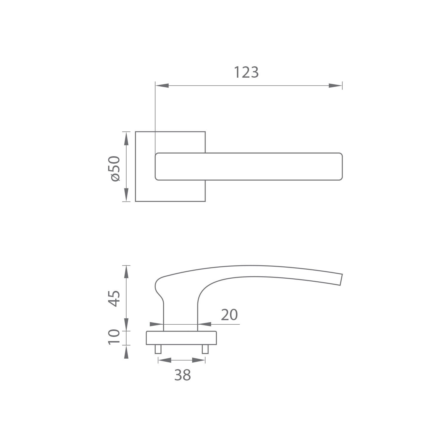 Rozetová kľučka GABRI na interiérové dvere s hranatou rozetou je vyrobená z materiálov vysokej kvality – zamak a je povrchovo upravená.