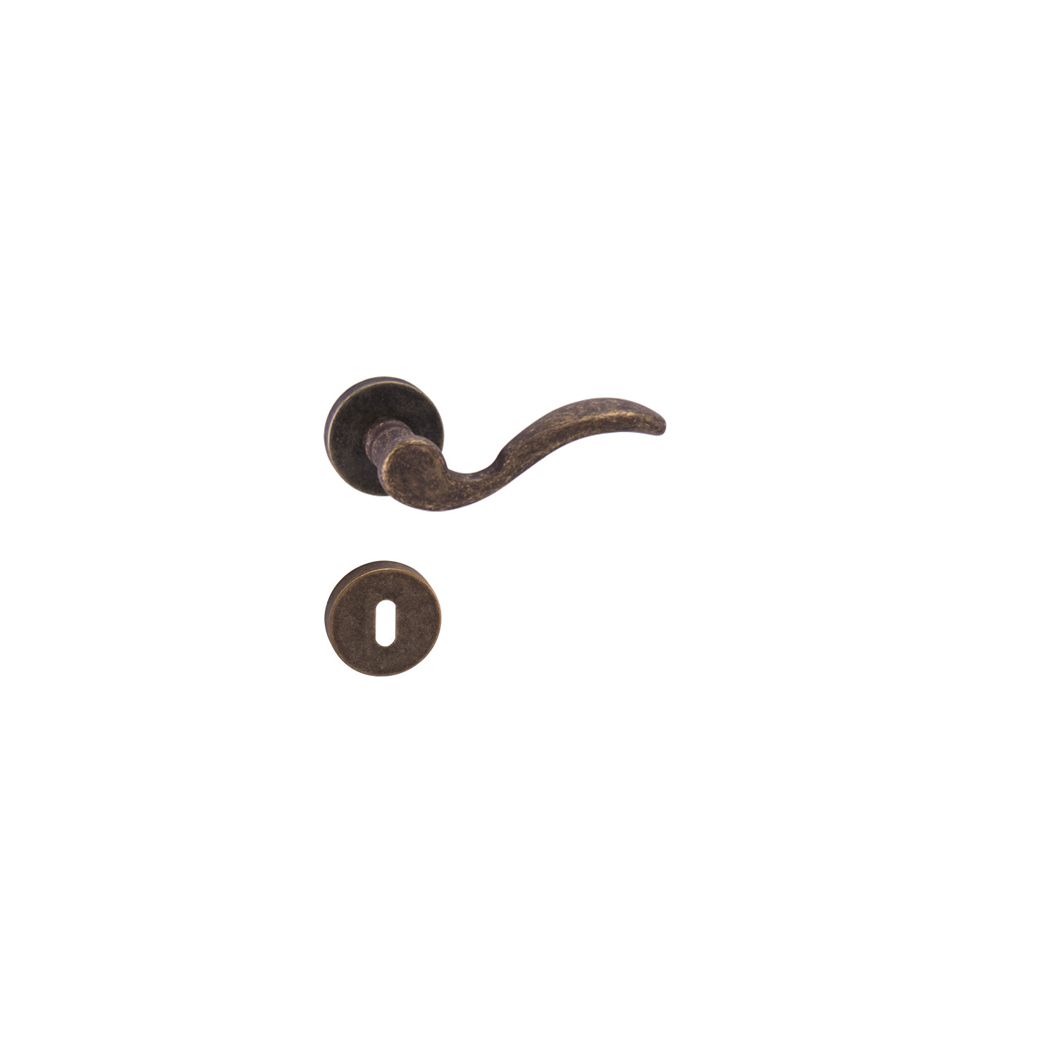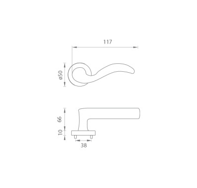 Rozetová kľučka na interiérové dvere s okrúhlou rozetou je vyrobená z materiálov vysokej kvality – zamak a je povrchovo upravená. Rozeta má priemer 50 mm a hrúbku 10 mm.