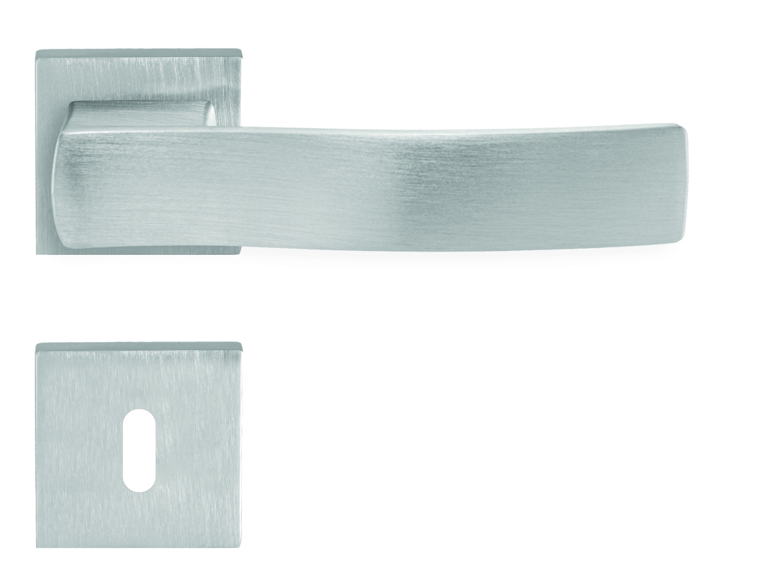 Rozetová kľučka na interiérové dvere s hranatou rozetou je z materiálov vysokej kvality – mosadz / zamak a je povrchovo upravená. Rozeta má štandardnú hrúbku 11 mm.