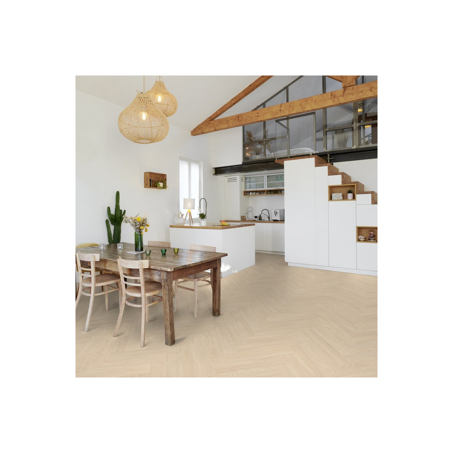 Vinylová podlaha Gerflor Virtuo 55 HB Blomma Beige 1460 2,5/0,55 mm 33/42 4V Herringbone - rybia kosť