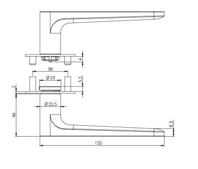Mechanizmus kľučky obsahuje vratnú pružinu. Výstupky na rozete zabraňujú jej pretáčaniu a skrutky na preskrutkovanie cez celú šírku dverí zaručia pevnejšie a stabilnejšie uchytenie kovania.