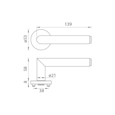 Štandardne je kovanie dodávané so skrutkami a štvorhranom (8x8 mm) pre hrúbku dverí 38 - 45 mm.