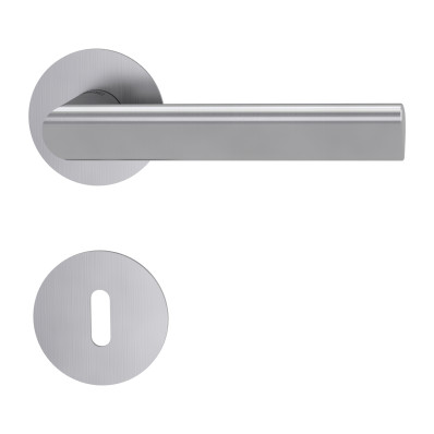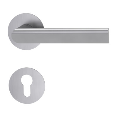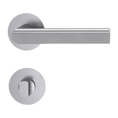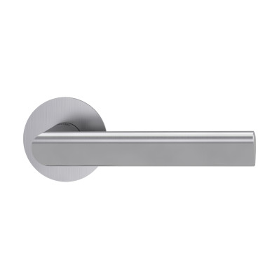 Rozetová kľučka TRI 134 PIATTA S na interiérové dvere s okrúhlou rozetou je vyrobená z vysokokvalitnej nehrdzavejúcej ocele, známej ako nerez a je povrchovo upravená. Rozeta má priemer 54 mm a hrúbku 2 mm.