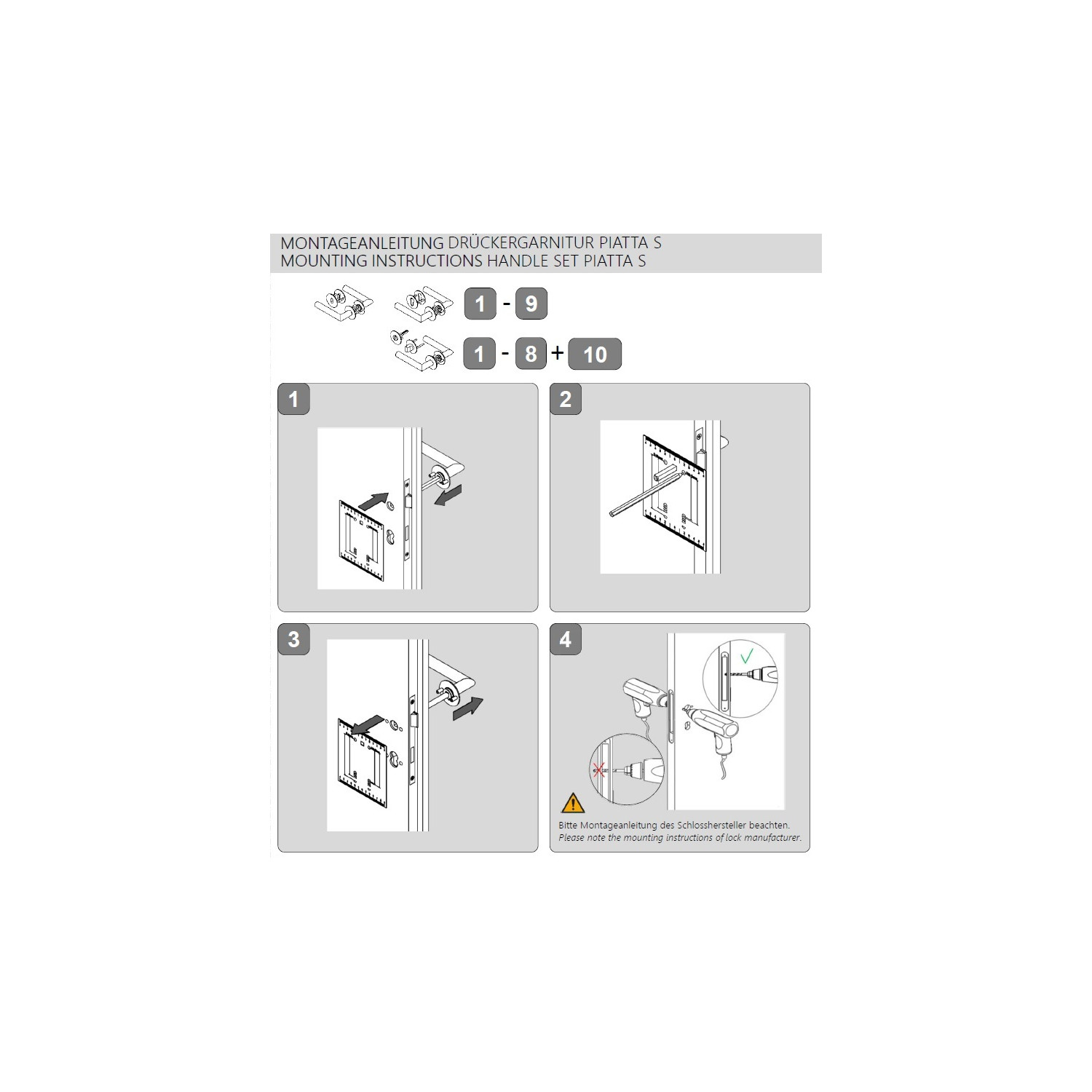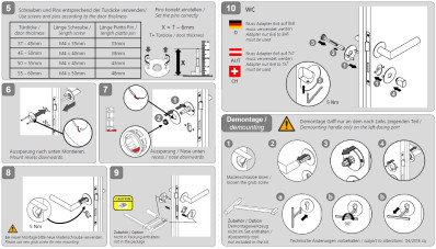 Mechanizmus kľučky obsahuje vratnú pružinu. Výstupky na rozete zabraňujú jej pretáčaniu a skrutky na preskrutkovanie cez celú šírku dverí zaručia pevnejšie a stabilnejšie uchytenie kovania.