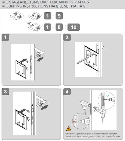 Štandardne je kovanie dodávané so skrutkami a štvorhranom (8x8 mm) pre hrúbku dverí 38 - 45 mm.