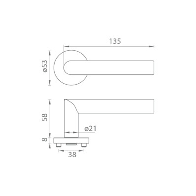 Rozetová kľučka na interiérové dvere s okrúhlou rozetou je vyrobená z vysokokvalitnej nehrdzavejúcej ocele, známej ako nerez a je povrchovo upravená. Rozeta má priemer 53 mm a hrúbku 8 mm.