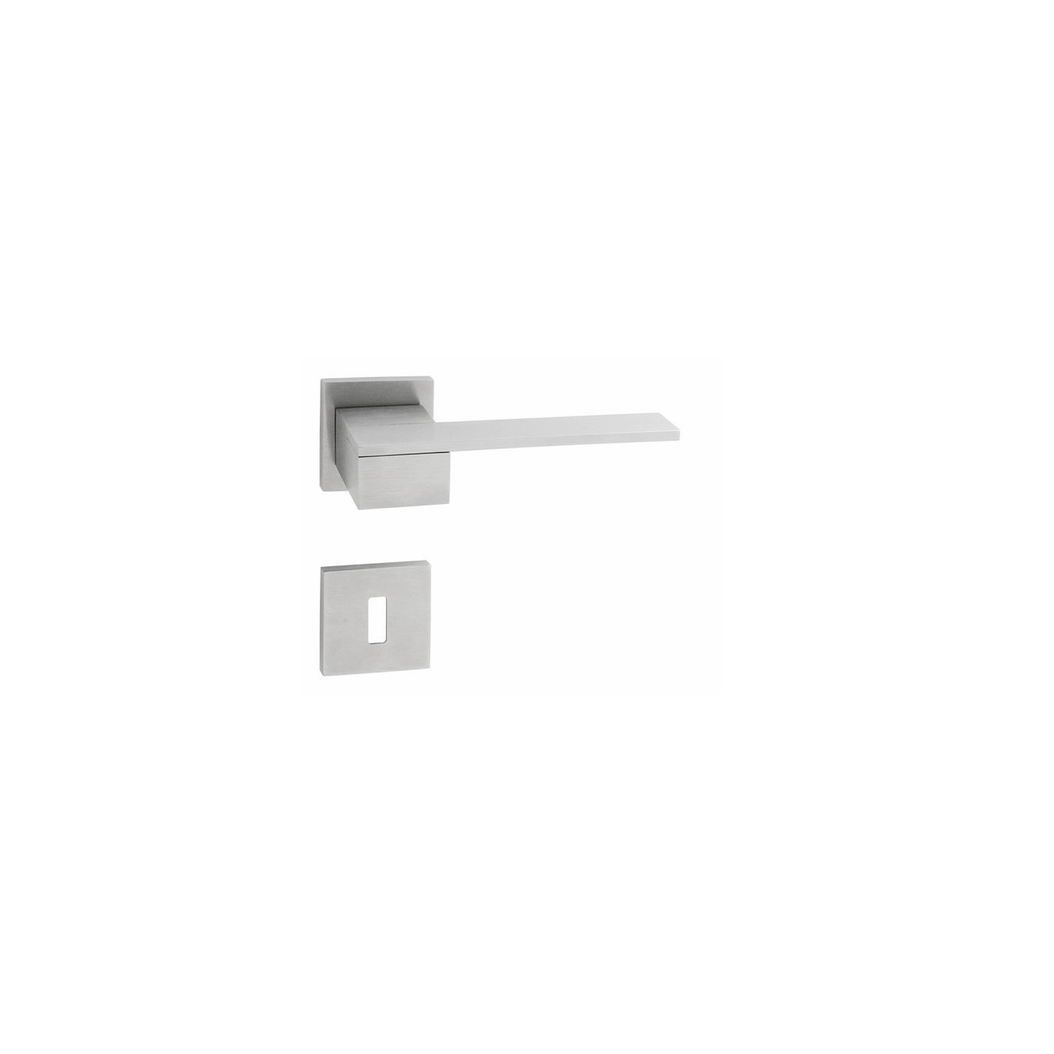Rozetová kľučka na interiérové dvere s hranatou rozetou je vyrobená z vysokokvalitnej nehrdzavejúcej ocele, známej ako nerez a je povrchovo upravená.