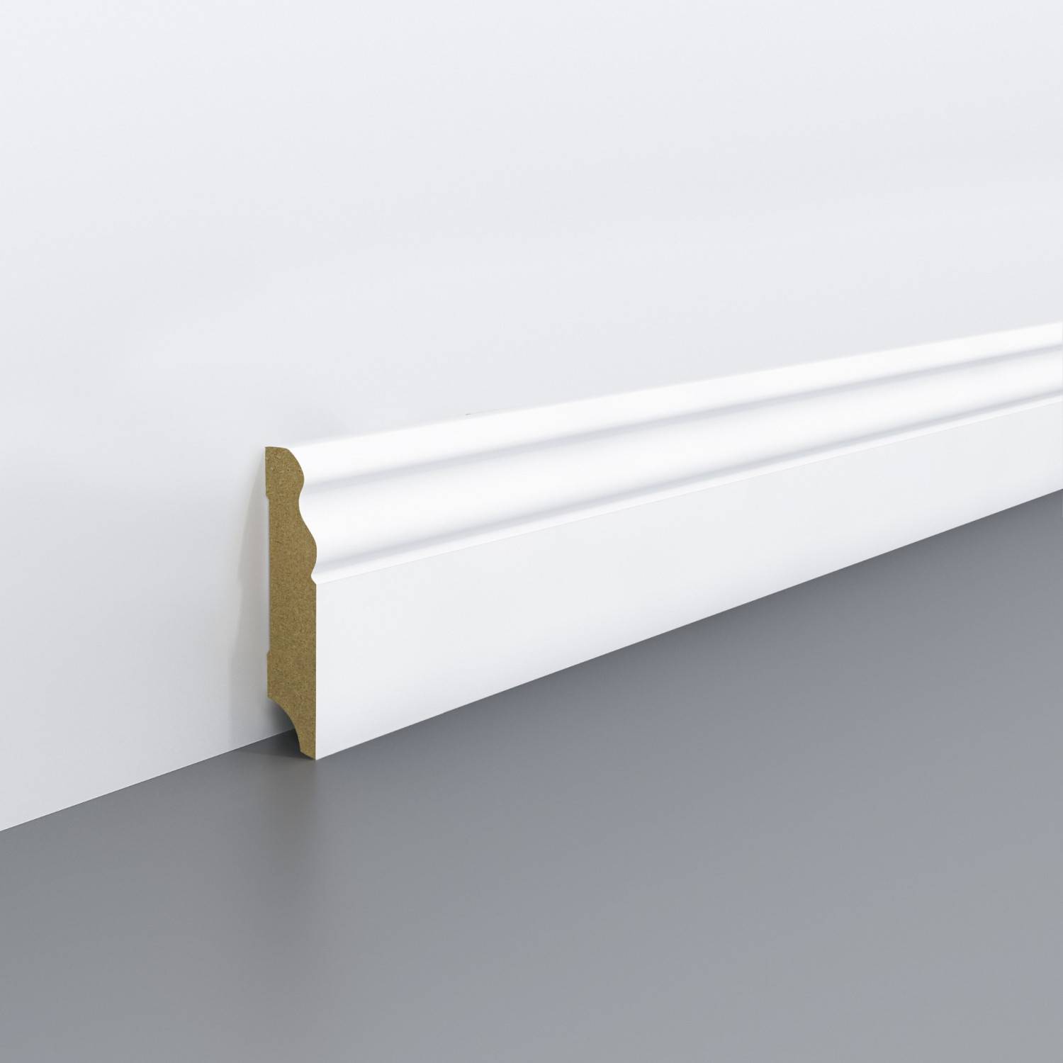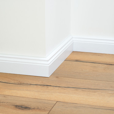 Lišta soklová Egger 70 profilovaná "Hamburg" L201 RAL9016 MDF fólia Biela pretierateľná 70x18x2400 mm