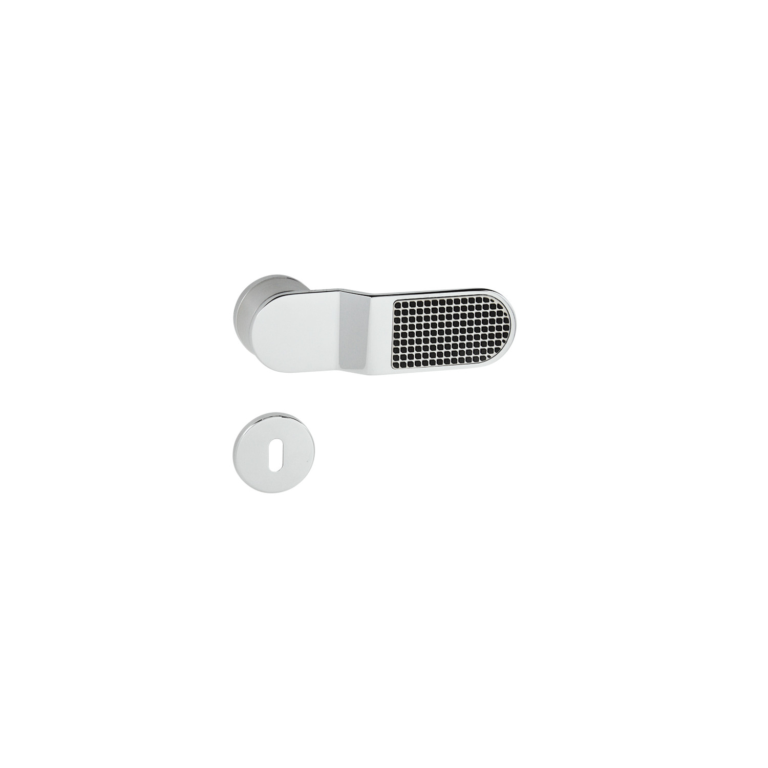 Kľučka s gumou z rady Mariani Design line obsahuje vratný mechanizmus v kovovom puzdre. Výstupky na rozete zabraňujú jej pretáčaniu a skrutky na preskrutkovanie cez celú šírku dverí zaručia pevnejšie a stabilnejšie uchytenie kovania. Výsledná konštrukcia spája funkčné aj ergonomické požiadavky, v masívnom modernom dizajne.