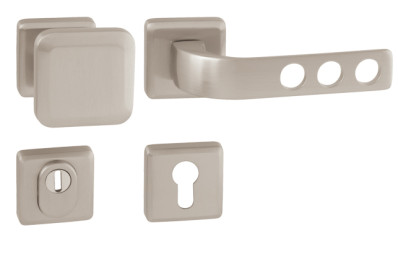 Rozetová kľučka na vchodové a bezpečnostné dvere so spevnenou hranatou rozetou s prekrytím cylindrickej vložky je vyrobená z materiálov vysokej kvality – mosadz a je povrchovo upravená. Hranatá rozeta má rozmery 53 mm x 53 mm a hrúbku 12 mm.