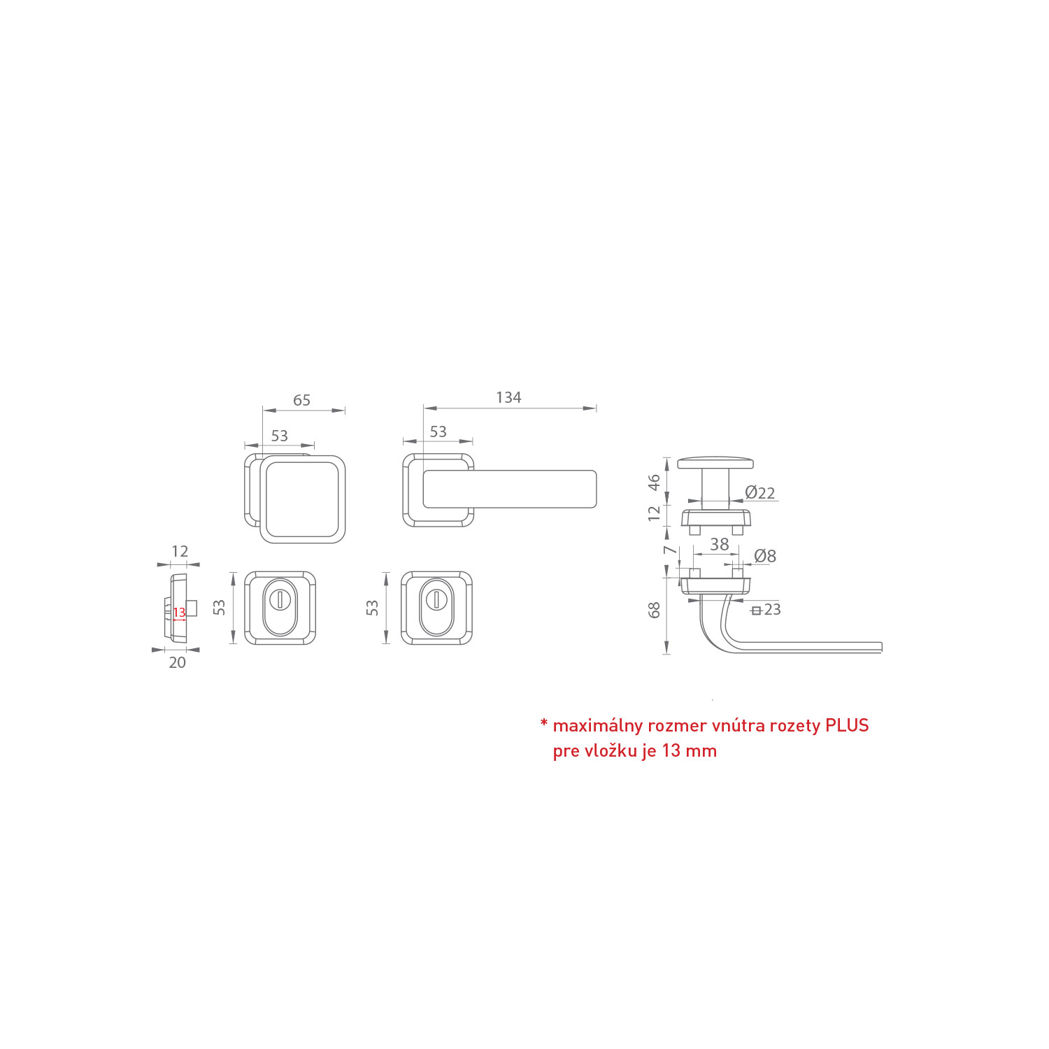 Maximálny rozmer vnútra rozety PLUS pre vložku je 13 mm.