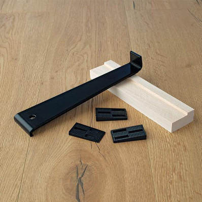 Montážna súprava EGGER je vhodná na kladenie všetkých podláh EGGER so zámkovým systémom EGGER CLICit!. Ideálny pomocník pre každého, kto si plánuje položit podlahu svojpomocne. Sada obsahuje drevený dorážací blok zo 100% tvrdeného bukového dreva, kovové pácidlo a 20 plastových vymedzovacích klinov.