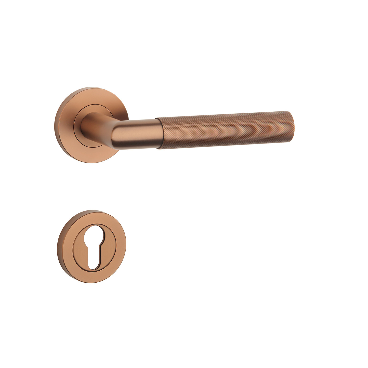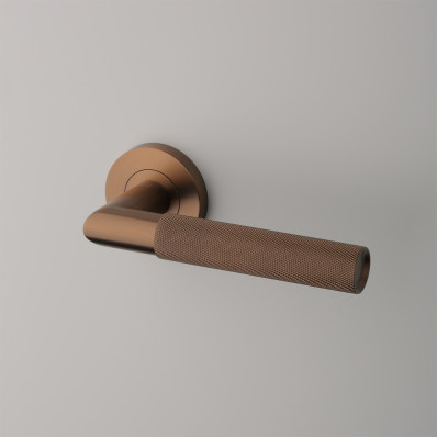 Rukoväť s výrazným vrúbkovaným vzorom dodáva kľučke jedinečný charakter. Skvele sa hodí do urbanistických a art deco interiérov, no ako dizajnový prvok vynikne aj v klasickom priestore. Vytvára spojenie estetiky a funkčnosti pre náročný vkus.