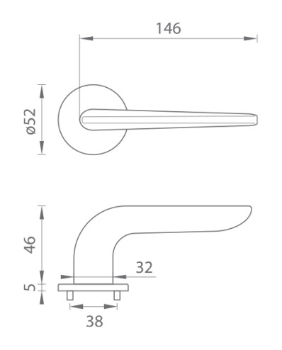 Rozetová kľučka na interiérové dvere s okrúhlou rozetou je vyrobená z materiálov vysokej kvality - mosadz a je povrchovo upravená. Rozeta má priemer 52 mm a hrúbku len 5 mm.