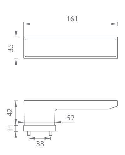 Rozetová kľučka na interiérové dvere s obdĺžnikovou rozetou je vyrobená z materiálov vysokej kvality - zamak a je povrchovo upravená. Rozeta má rozmery 52 mm x 35 mm a štandardnú hrúbku 11 mm. Samotná rozeta je súčasťou dizajnu kľučky.