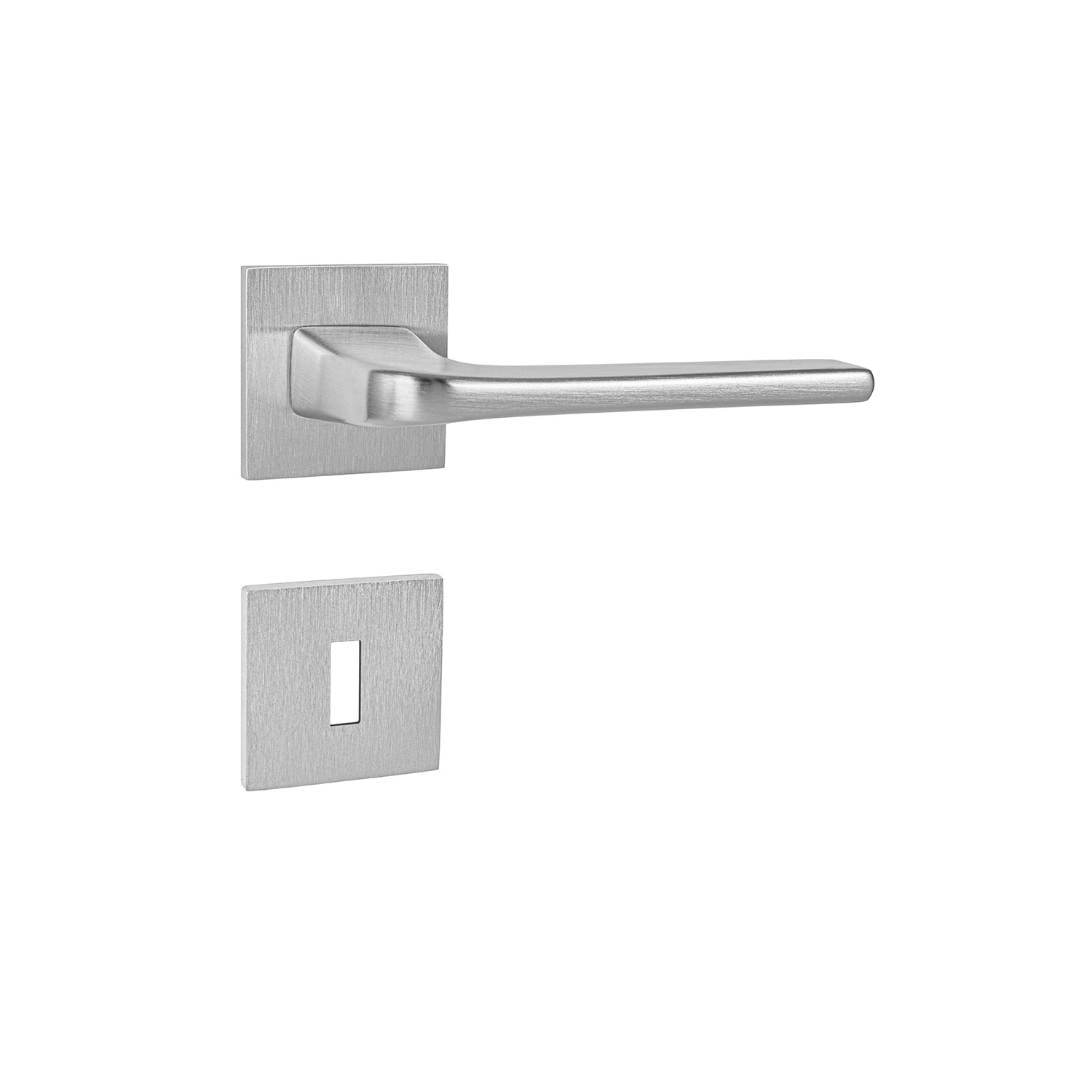 Rozetová kľučka na interiérové dvere s hranatou rozetou je vyrobená z materiálov vysokej kvality - mosadz a je povrchovo upravená. Rozeta má rozmery 52 mm x 52 mm a hrúbku len 5 mm.