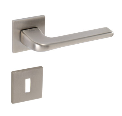 Rozetová kľučka na interiérové dvere s hranatou rozetou je vyrobená z materiálov vysokej kvality - mosadz a je povrchovo upravená špeciálnou technológiou. Rozeta má rozmery 52 mm x 52 mm a hrúbku len 5 mm.