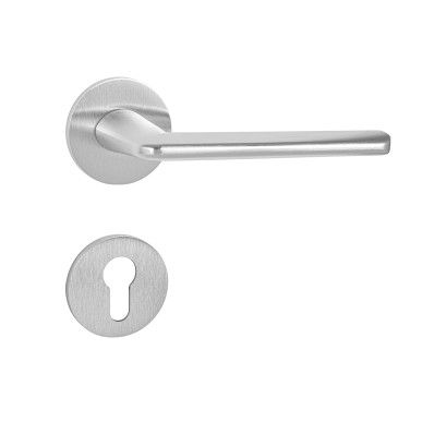 Rozetová kľučka na interiérové dvere s okrúhlou rozetou je vyrobená z materiálov vysokej kvality - zamak a je povrchovo upravená. Rozeta má priemer 52 mm a hrúbku len 5 mm.