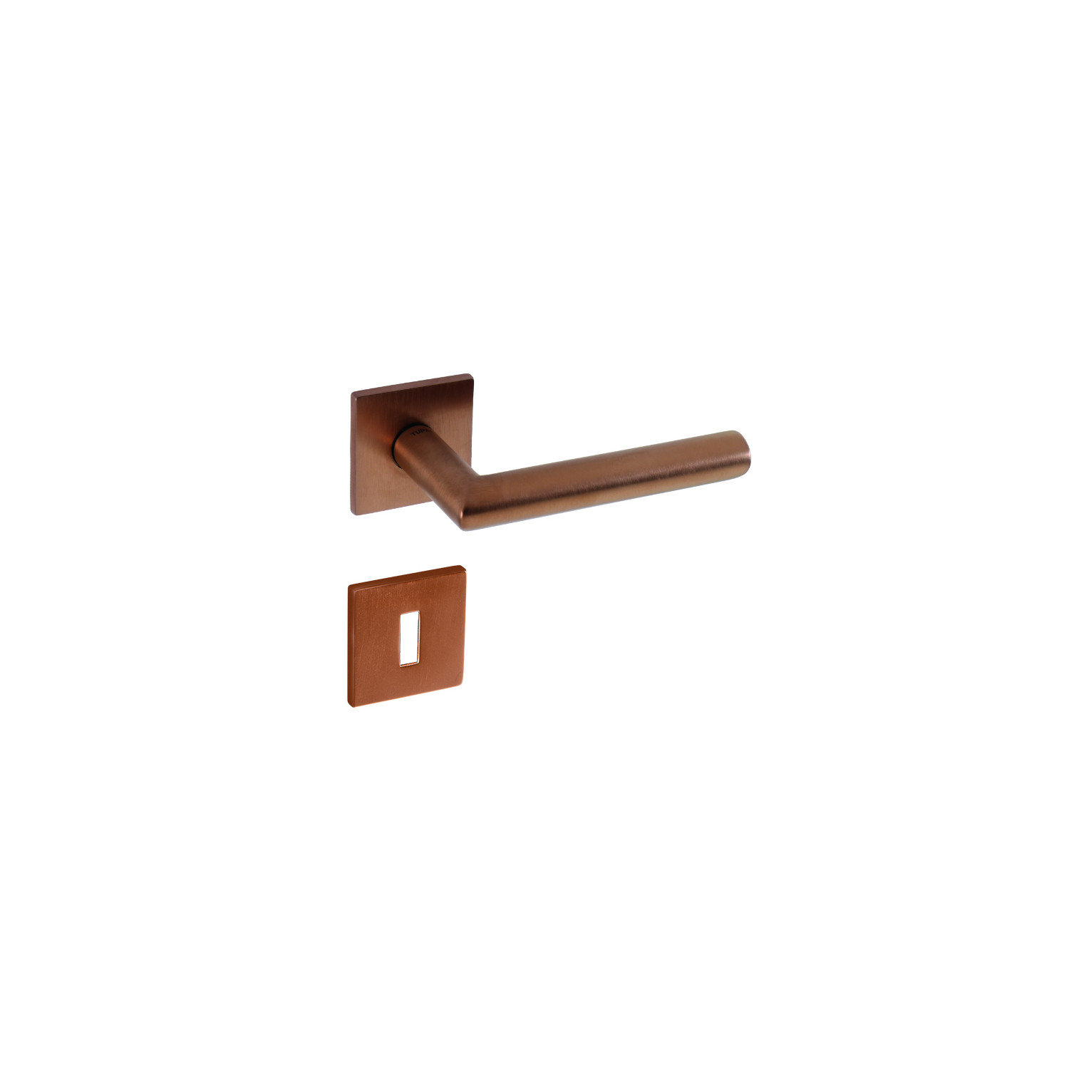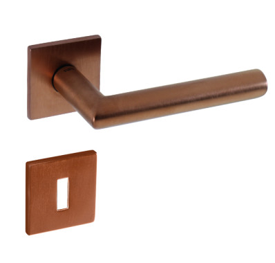 Rozetová kľučka na interiérové dvere s hranatou rozetou je vyrobená z materiálov vysokej kvality - mosadz a je povrchovo upravená špeciálnou technológiou. Rozeta má rozmery 52 mm x 52 mm a hrúbku len 5 mm.