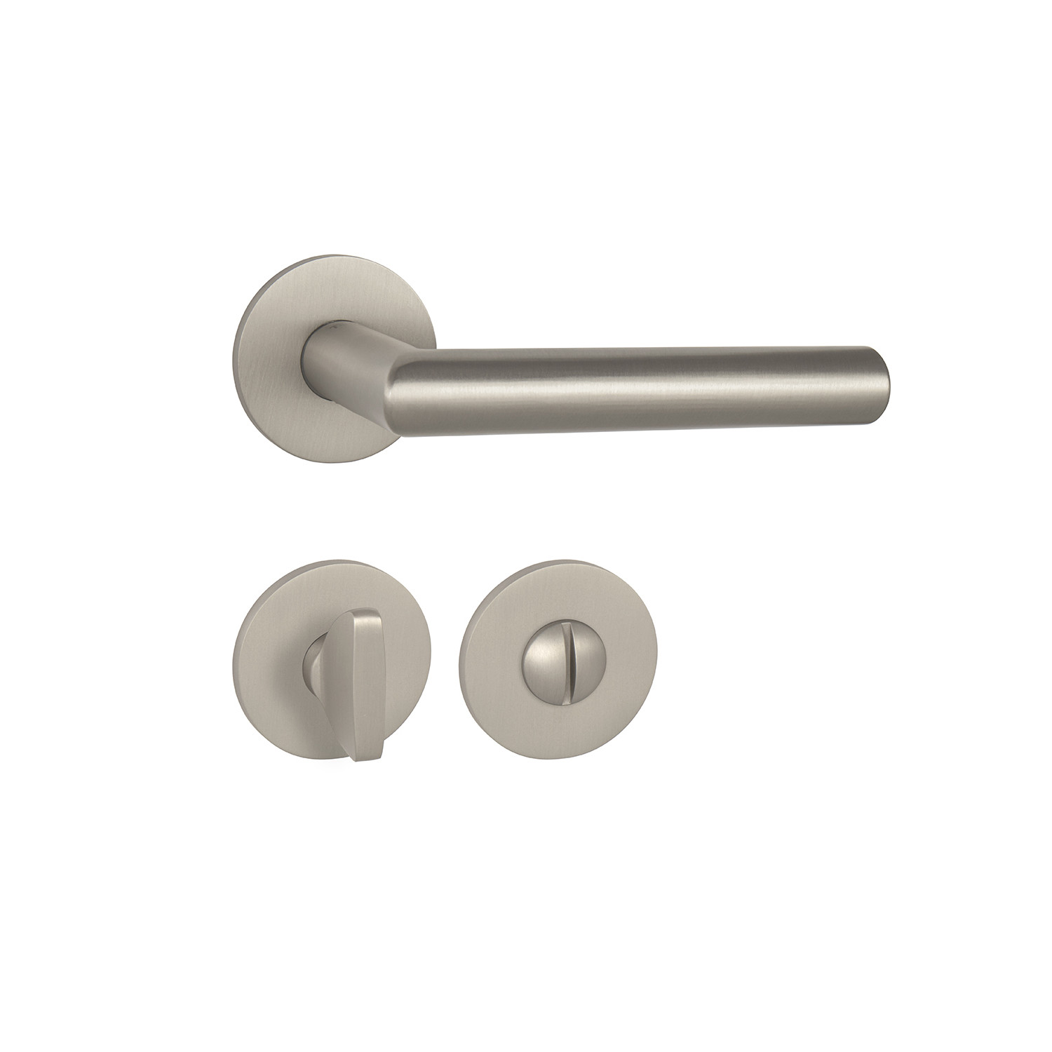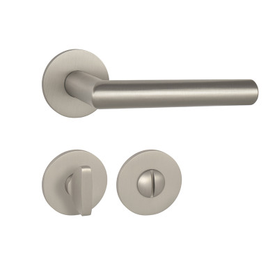 Rozetová kľučka na interiérové dvere s okrúhlou rozetou je vyrobená z vysokokvalitnej nehdrzavejúcej ocele, známej ako nerez a je povrchovo upravená. Rozeta má priemer 52 mm a hrúbku len 5 mm.