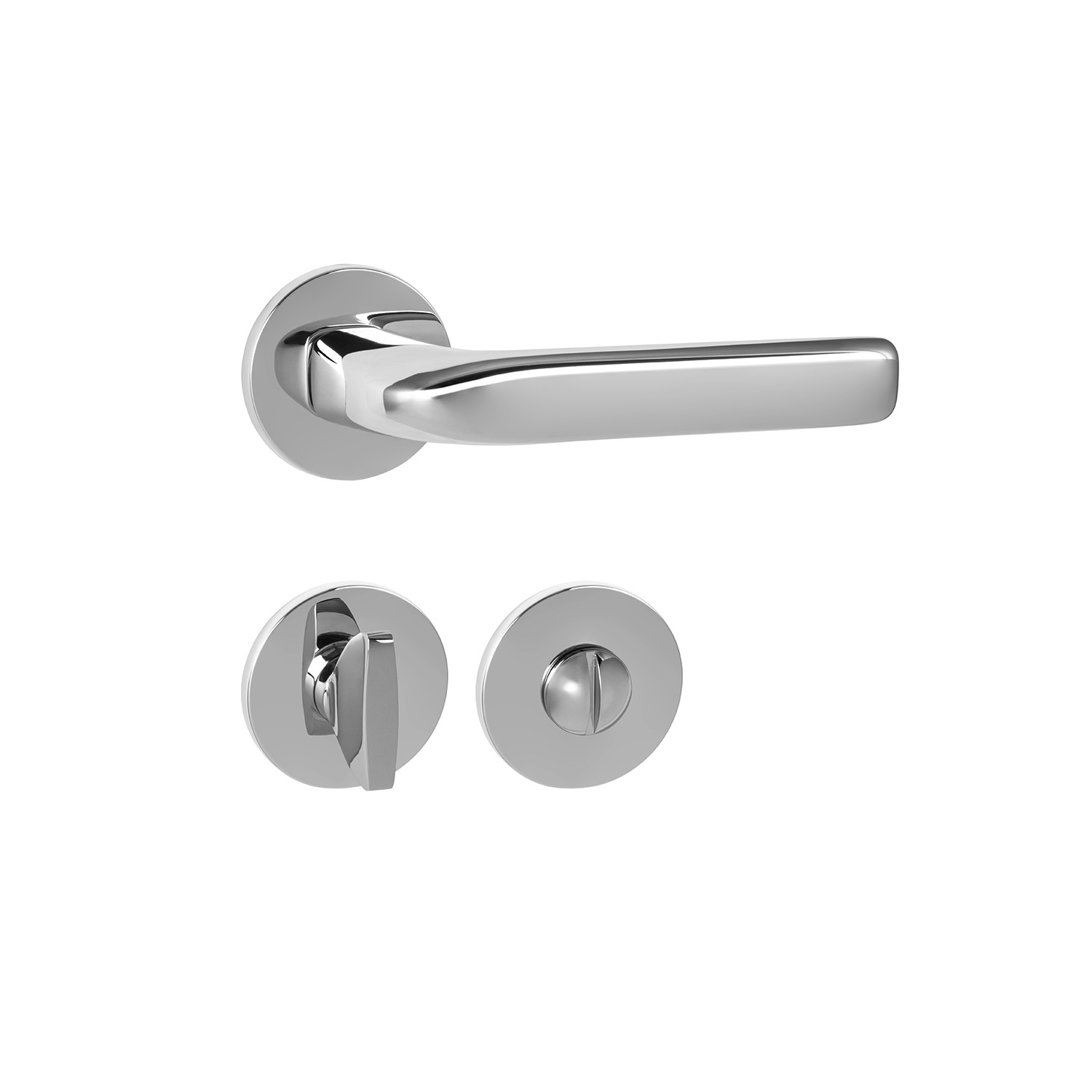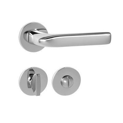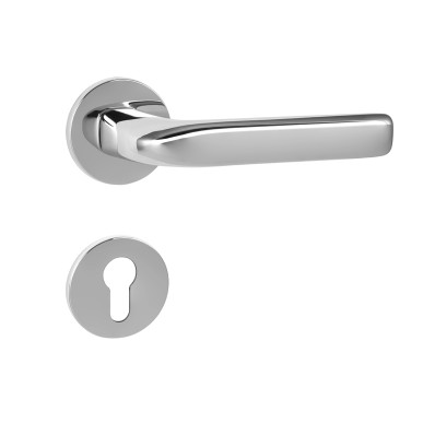 Rozetová kľučka na interiérové dvere s okrúhlou rozetou je vyrobená z materiálov vysokej kvality - mosadz a je povrchovo upravená. Rozeta má priemer 52 mm a hrúbku len 5 mm.