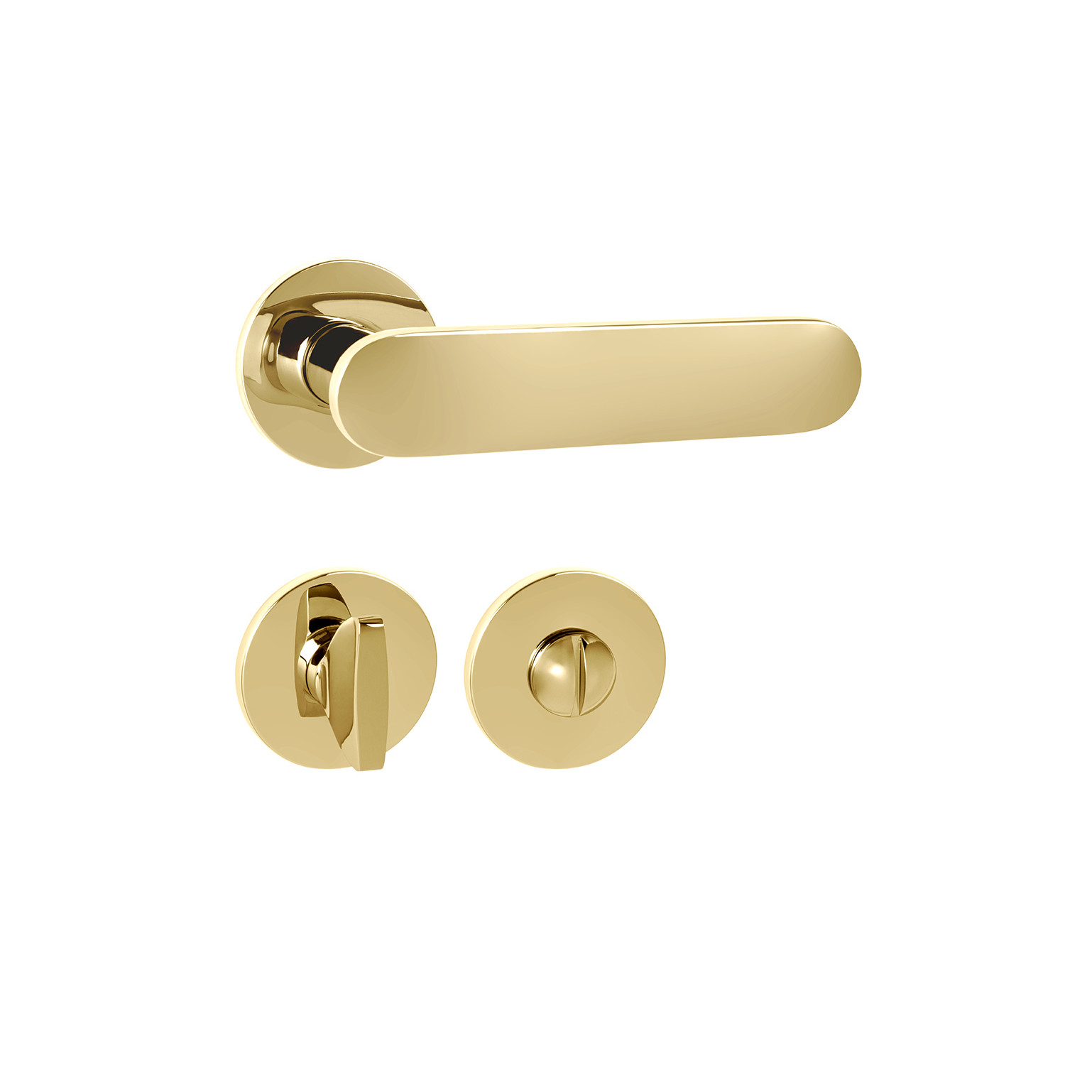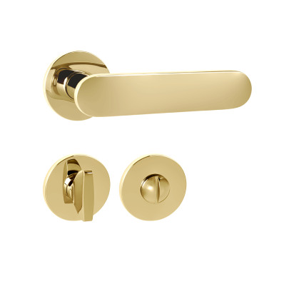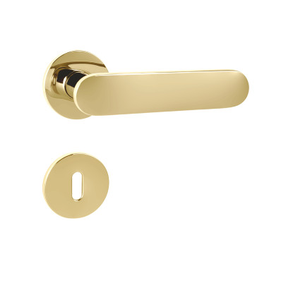 Rozetová kľučka na interiérové dvere s okrúhlou rozetou je vyrobená z materiálov vysokej kvality - mosadz a je povrchovo upravená. Rozeta má priemer 52 mm a hrúbku len 5 mm.