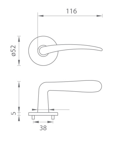 Rozetová kľučka na interiérové dvere s okrúhlou rozetou je vyrobená z materiálov vysokej kvality - mosadz a je povrchovo upravená. Rozeta má priemer 52 mm a hrúbku len 5 mm.