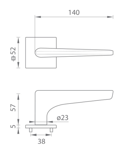 Rozetová kľučka na interiérové dvere s hranatou rozetou je vyrobená z materiálov vysokej kvality - mosadz a je povrchovo upravená. Rozeta má rozmery 52 mm x 52 mm a hrúbku len 5 mm.