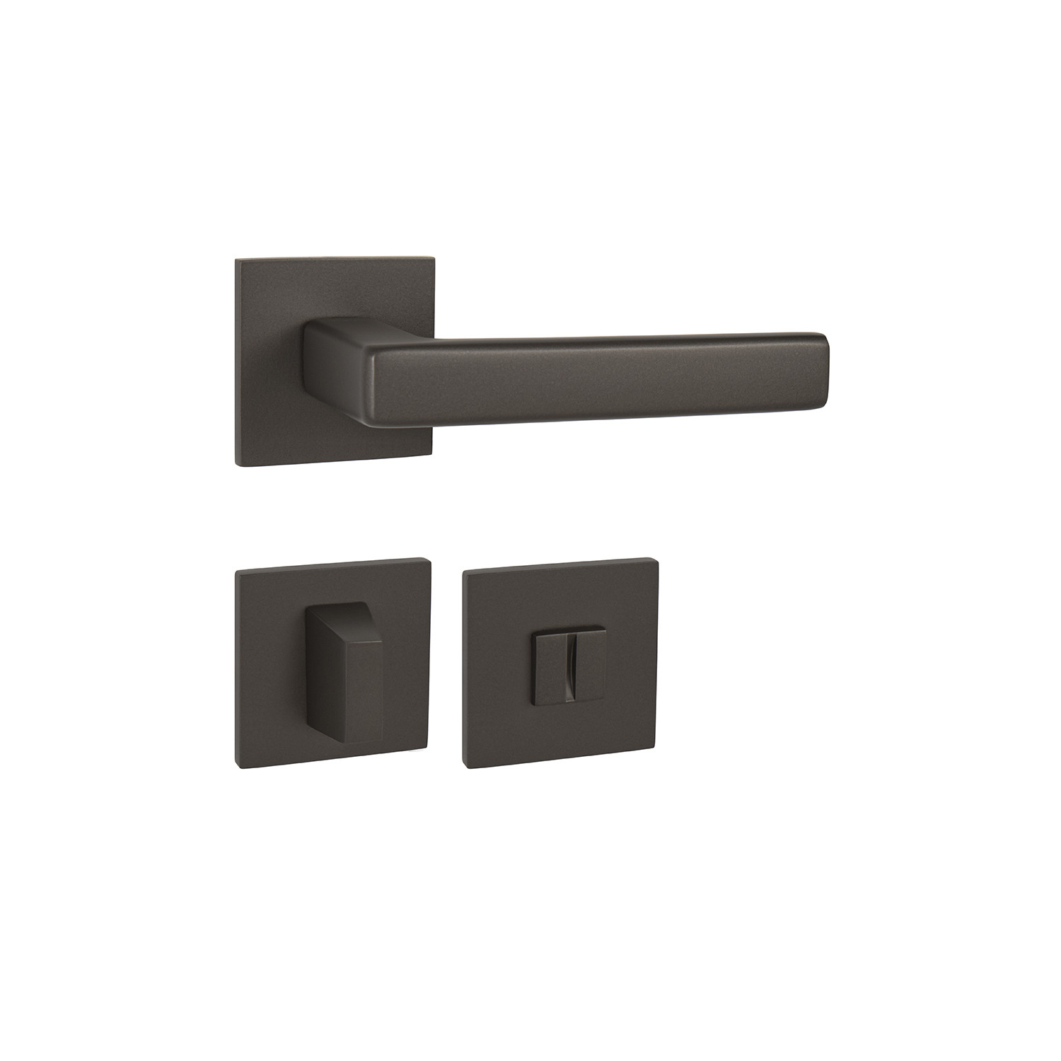 Rozetová kľučka na interiérové dvere s hranatou rozetou je vyrobená z materiálov vysokej kvality - mosadz a je povrchovo upravená. Rozeta má rozmery 52 mm x 52 mm a hrúbku len 5 mm.