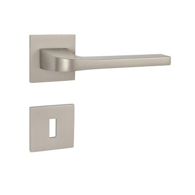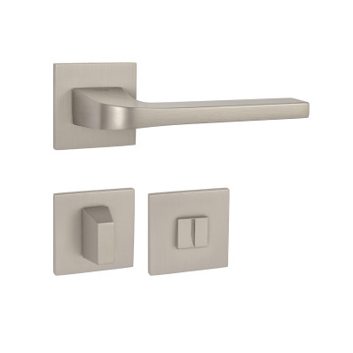 Rozetová kľučka na interiérové dvere s hranatou rozetou je vyrobená z materiálov vysokej kvality - zamak a je povrchovo upravená. Rozeta má rozmery 52 mm x 52 mm a hrúbku len 5 mm.