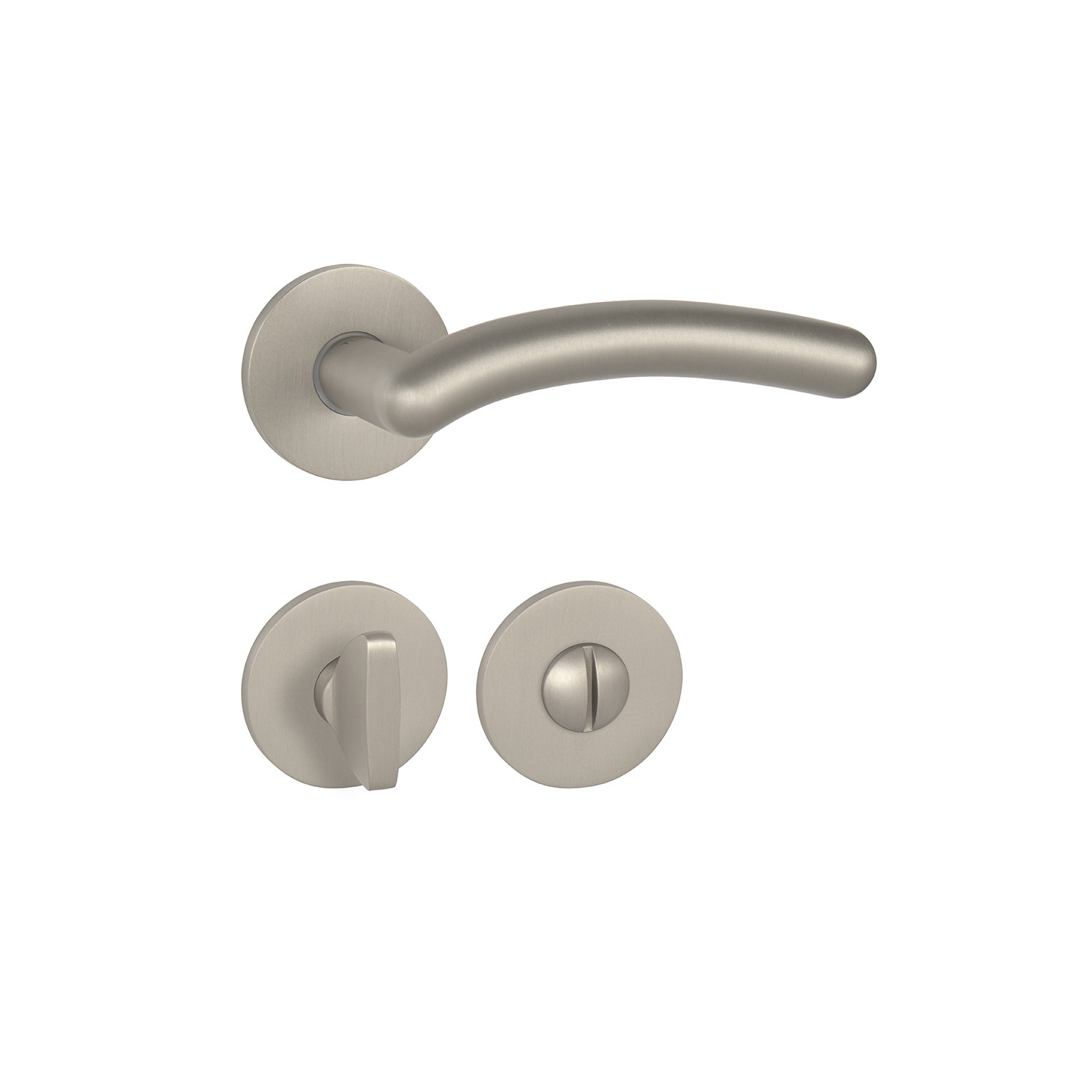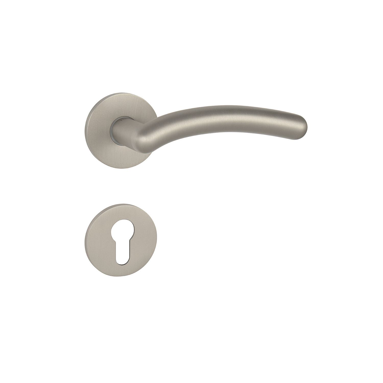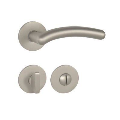 Rozetová kľučka na interiérové dvere s okrúhlou rozetou je vyrobená z materiálov vysokej kvality - zamak a je povrchovo upravená. Rozeta má priemer 52 mm a hrúbku len 5 mm.